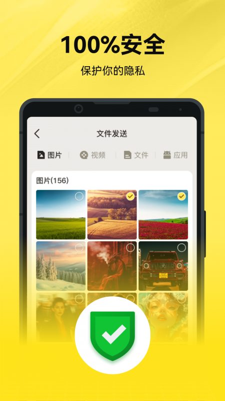 【灵活选择】:旧手机中的数据可由您自由挑选,无论照片、视频、还是文件应用,均可按需发送,满足个性化需求。
